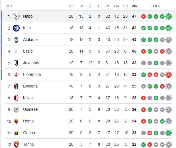 با این پیروزی، ناپولی با 4 امتیاز بیشتر نسبت به اینتر در صدر جدول حضور دارد اما نراتزوری 2 بازی کمتر انجام داده است.