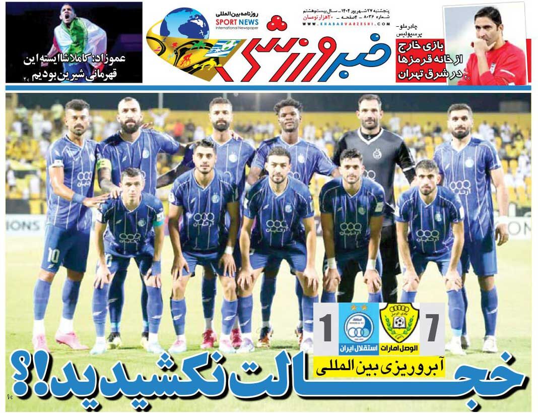 روزنامه خبرورزشی پنجشنبه ۲۷ شهریور ۱۴۰۴ منتشر شد.