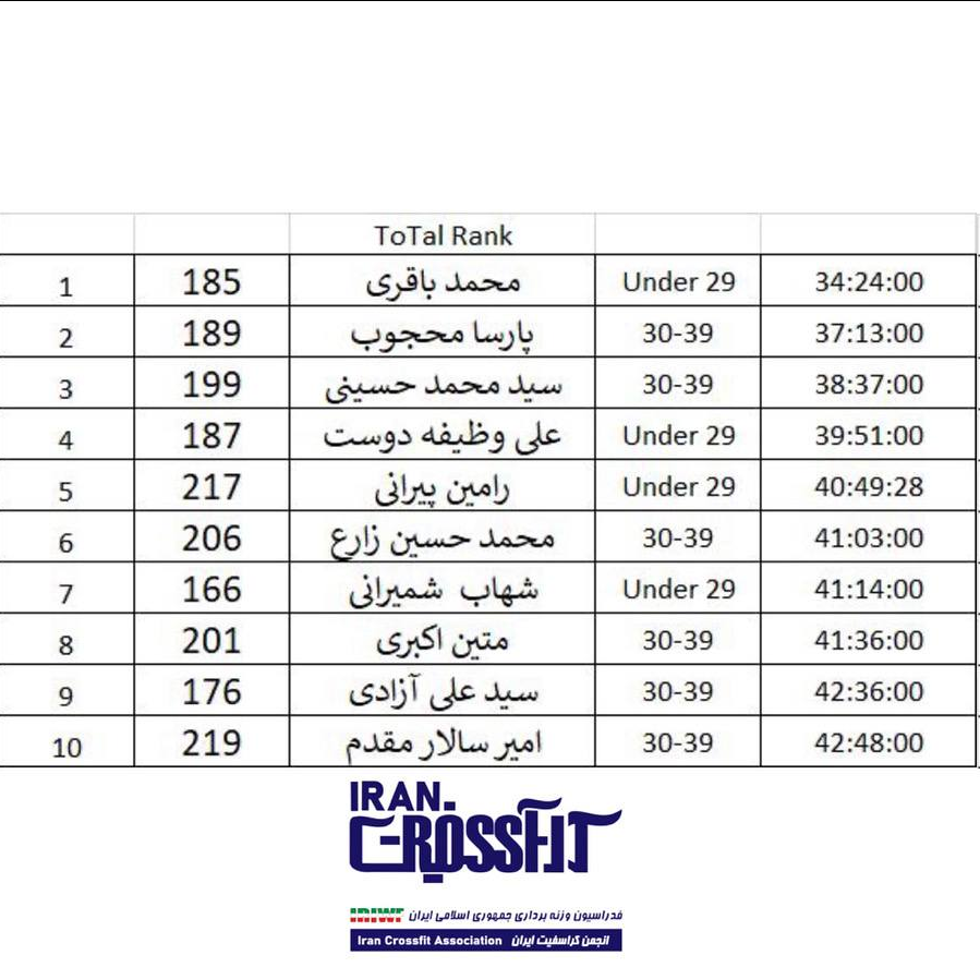 رکوردهای ۱۰ نفر برتر این رقابت ها به شکل زیر ثبت شد